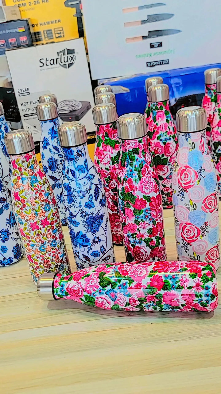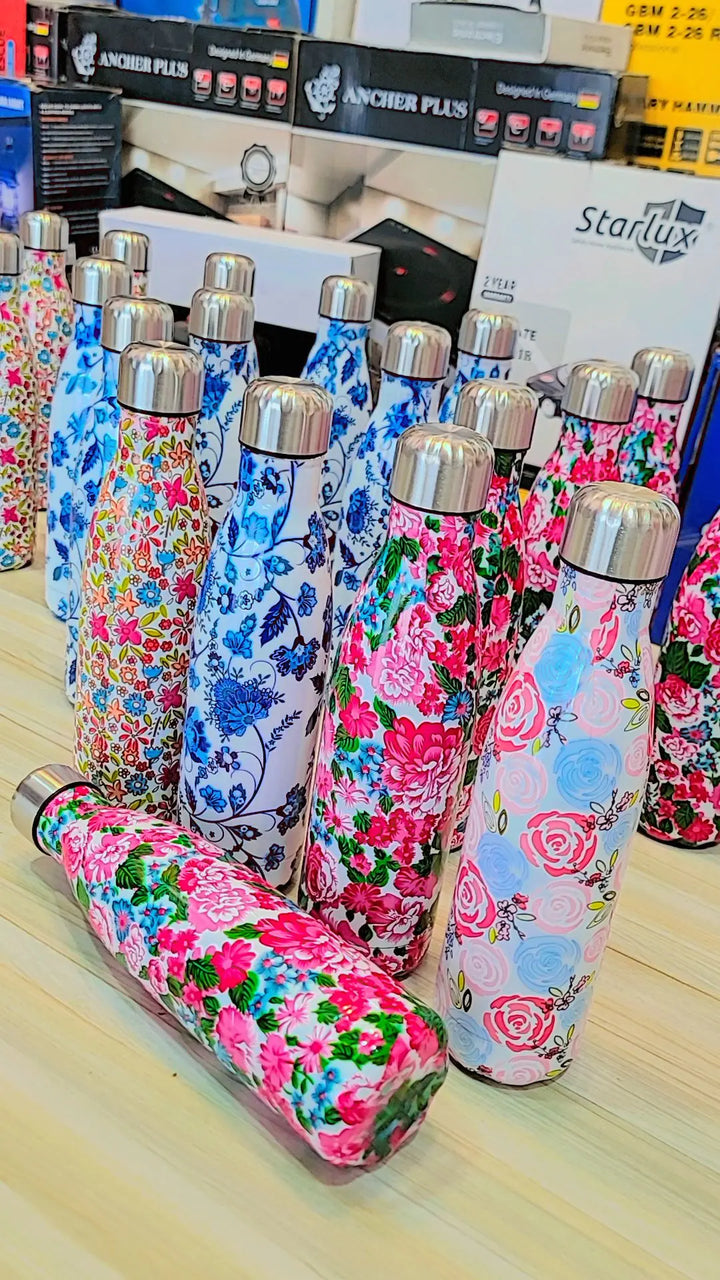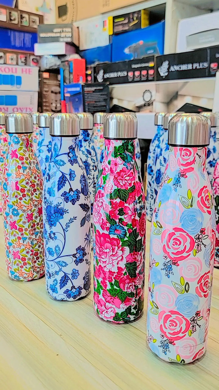 Bring a touch of tropical beauty to your daily hydration with our Tropical Floral Print 17oz (500ml) Stainless Steel Water Bottle. Featuring a vibrant floral design and double-walled vacuum insulation, this travel mug keeps your drinks hot for 12 hours and cold for 24 hours – making it the perfect companion for school, office, gym, or travel.Key Features & Benefits: